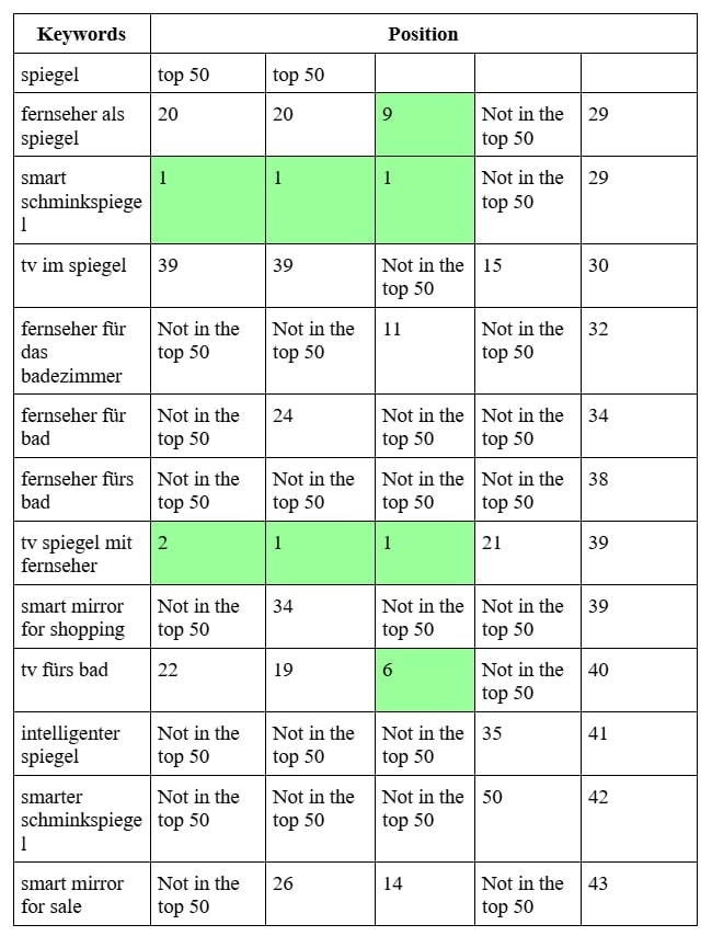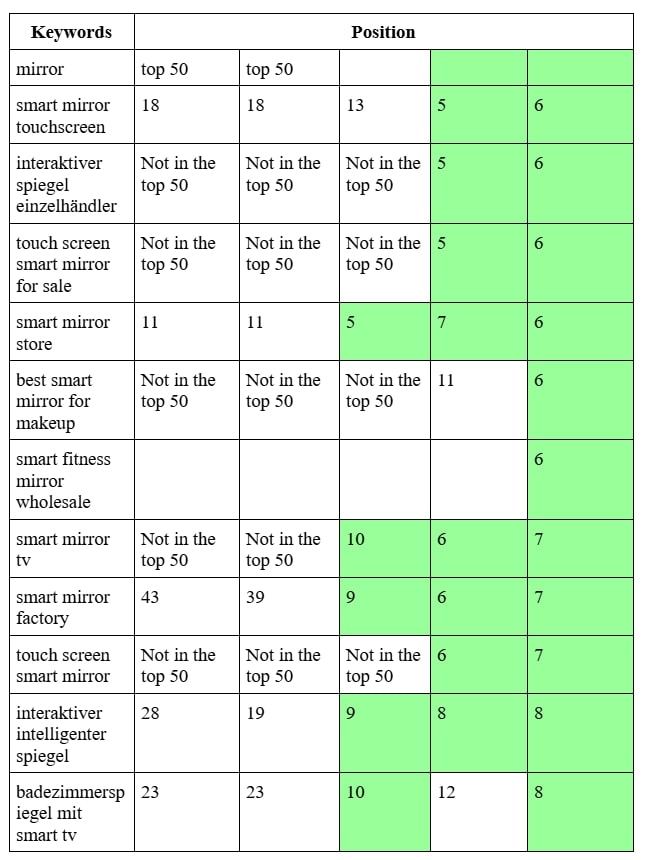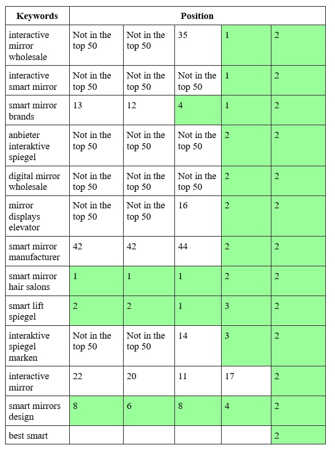 SEO продвижение сайта производителя умных зеркал в Германии