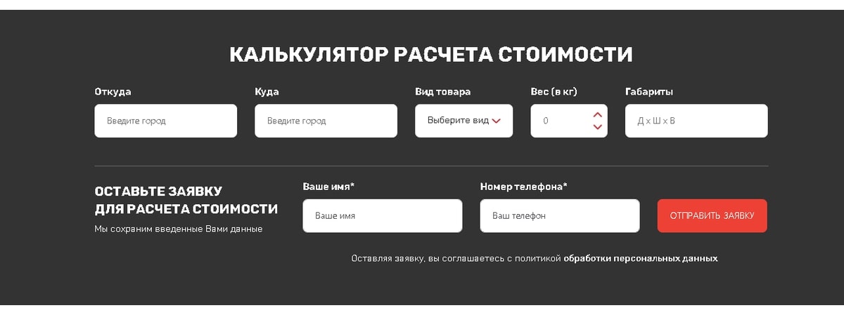 - Добавлен калькулятор (форма обратной связи) для расчета стоимости на главную страницу и страницы услуг:
